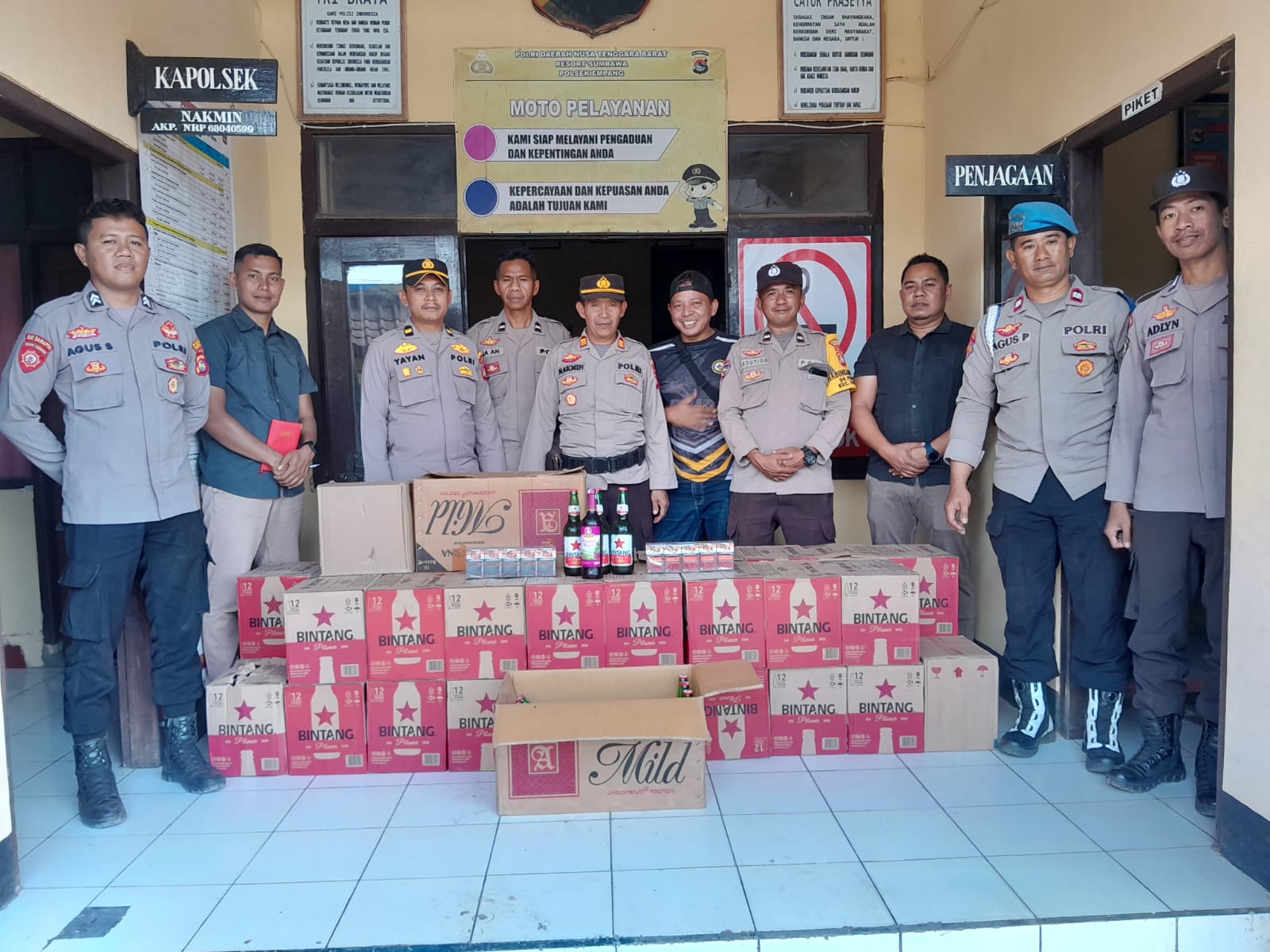 Kapolsek Empang, menjelaskan bahwa total barang bukti yang berhasil diamankan dari seluruh lokasi meliputi 142 botol Bir Bintang, 38 botol Anggur Merah, dan 28 slop rokok ilegal tanpa cukai.