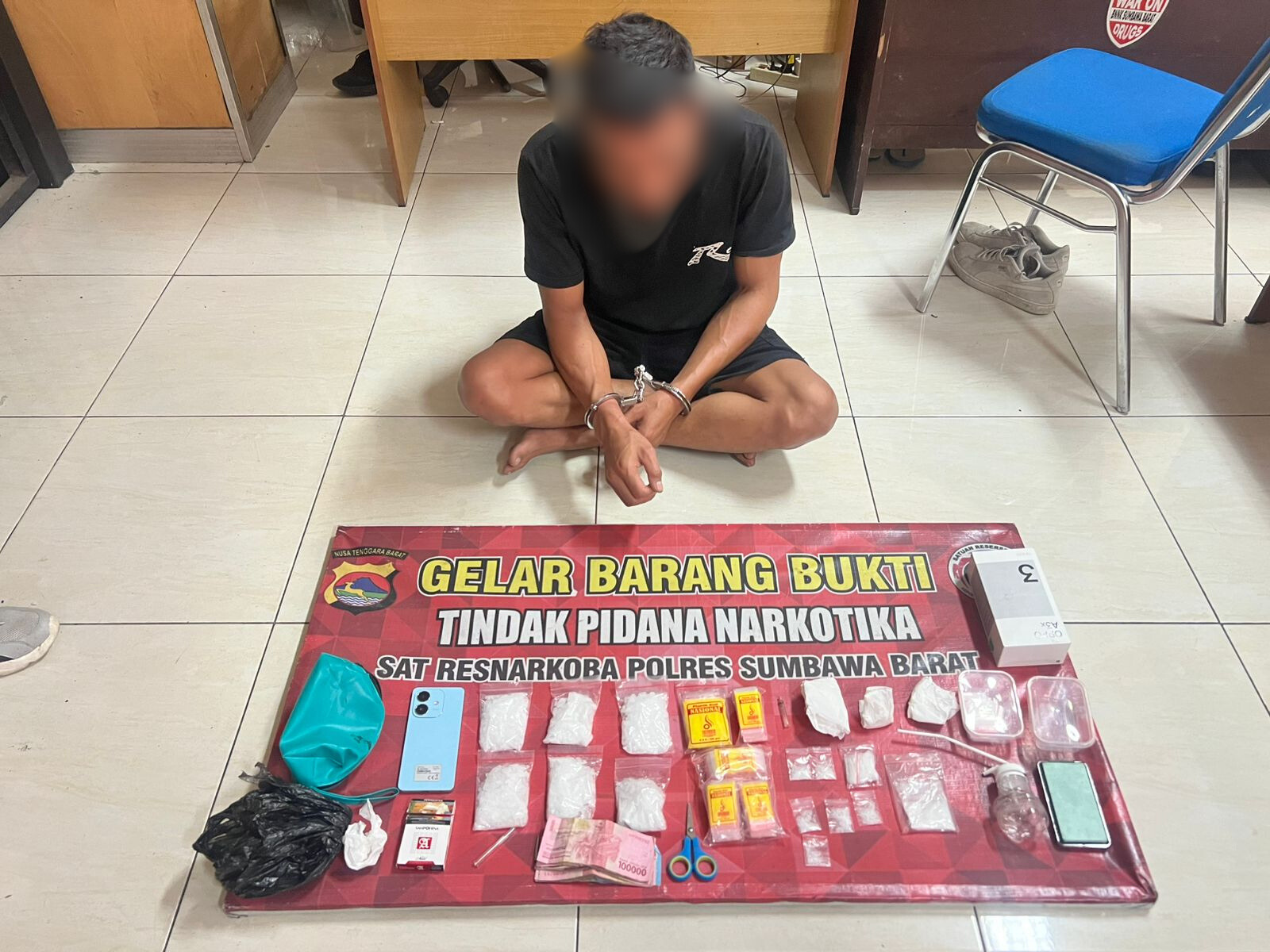 “Terduga H diamankan di salah satu kos-kosan di wilayah Telaga Baru, Kecamatan Taliwang. Saat dilakukan penggeledahan, petugas menemukan sabu beserta barang bukti lain yang berkaitan dengan tindak pidana narkoba,” jelas Iptu Ardiyatmaja.
