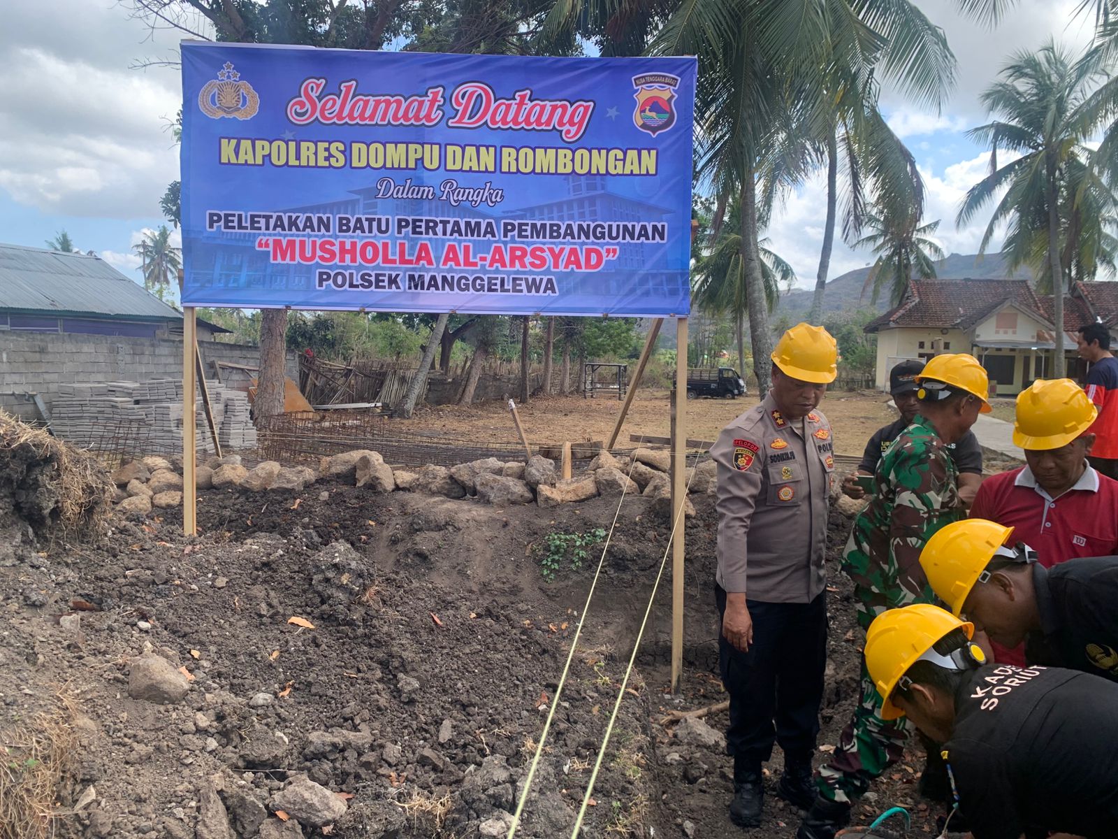 Kapolres Dompu Letakkan Batu Pertama Pembangunan Musholla Al-Arsyad di Polsek Manggelewa
