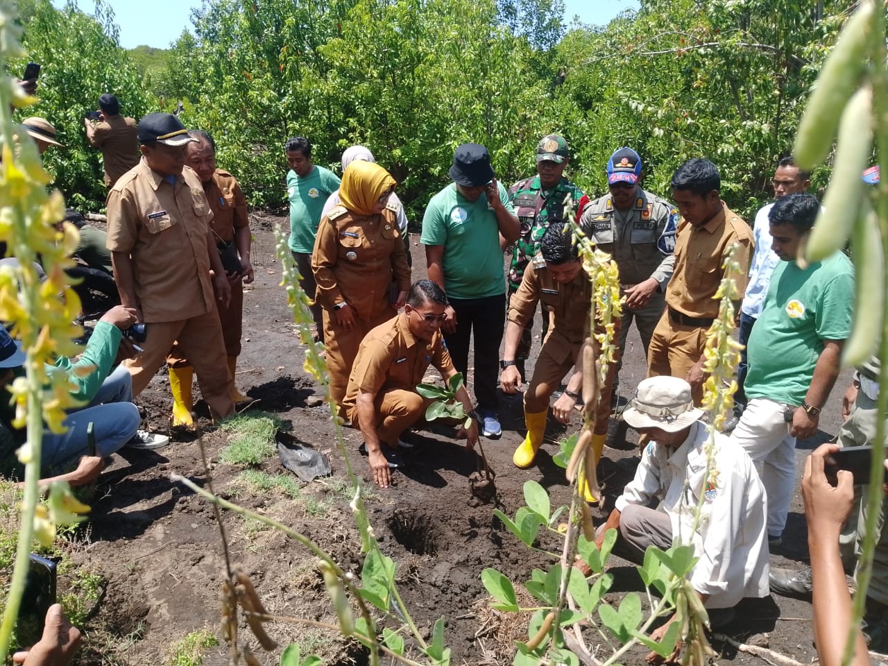 Bupati Dompu Bambang Firdaus, S.E. dalam sambutannya menyampaikan bahwa penanaman mangrove bukan sekadar kegiatan seremonial, tetapi langkah konkret untuk memulihkan ekosistem pesisir serta menjaga keberlanjutan sumber daya laut.