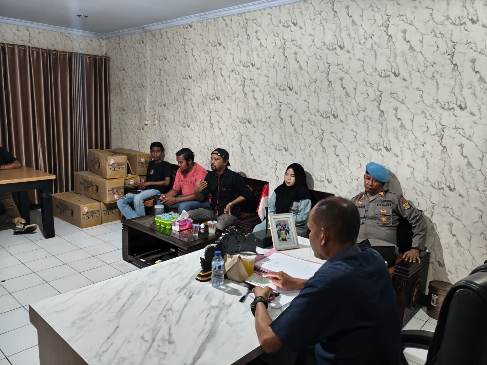 Perwakilan massa kemudian diterima oleh Kepala Seksi Profesi dan Pengamanan (Kasi Propam) Polres Dompu, AKP Zuharis, S.H., untuk melakukan dengar pendapat di ruang Propam Polres Dompu. Dalam pertemuan tersebut, pihak Propam menjelaskan bahwa berkas perkara telah ditingkatkan ke tahap penuntutan dan telah dilimpahkan ke Kejaksaan Negeri Dompu. Mereka juga menegaskan bahwa proses hukum berjalan sesuai dengan mekanisme dan ketentuan yang berlaku.
