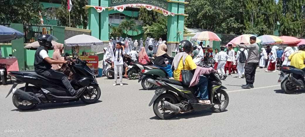Personel Polsek Rasanae Barat juga memastikan kehadiran mereka dapat memberikan rasa aman bagi para pelajar serta mendukung kelancaran aktivitas masyarakat di sepanjang jalur padat tersebut.